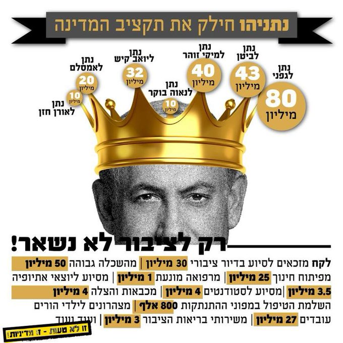 שר האוצר משה כחלון טען שמדובר בתקציב חברתי ועיוור צבעים. תקציב המדינה הוא הכלי המרכזי המשמש את ממשלת ישראל ליישום סדרי העדיפויות שלה ולקביעת רמת ההוצאה הממשלתית. סוף סוף מחזירים את המדינה למסלול, יהיה תקציב לבריאות, לביטחון, לחינוך, לרווחה, לתחבורה, יהיה תקציב שיושקע באזרחי המדינה. תקציב המדינה הוא הביטוי המובהק ביותר של מדיניות הממשלה, משום שהוא קובע את הסכומים שיוקצבו לכל אחת ממטרותיה של הממשלה. נראה אתכם יודע מי מקבל יותר.